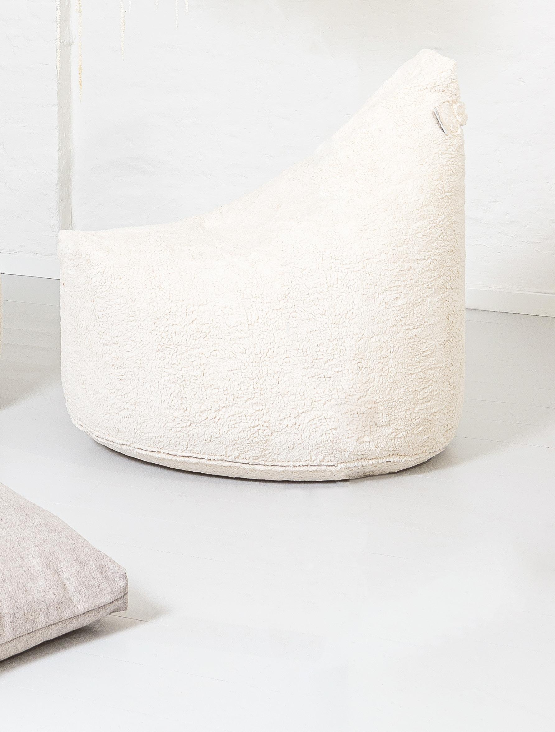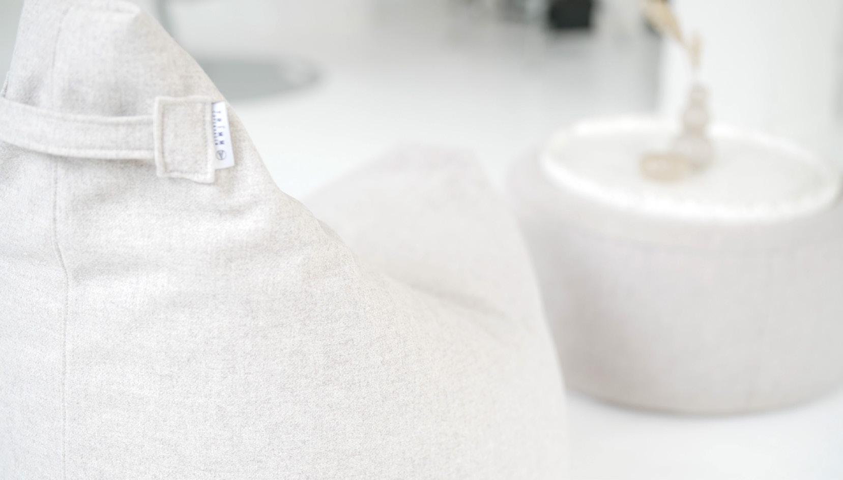 The Teddy, Wool, and NOAH collections consists of two parts; an inner beanbag and a removable cover. The idea of dividing the product into FILLING + INNER BAG + OUTER COVER is to make the product more long-lasting, as the outer cover can easily be replaced or washed as needed. All materials can thus be recycled or repaired independently of each other. In addition, the inner beanbag can also be refilled if it becomes flat over time or you can reuse the filling for another product.