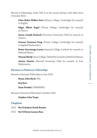 T R I N I T Y A N N UA L R ECOR D 2016 137