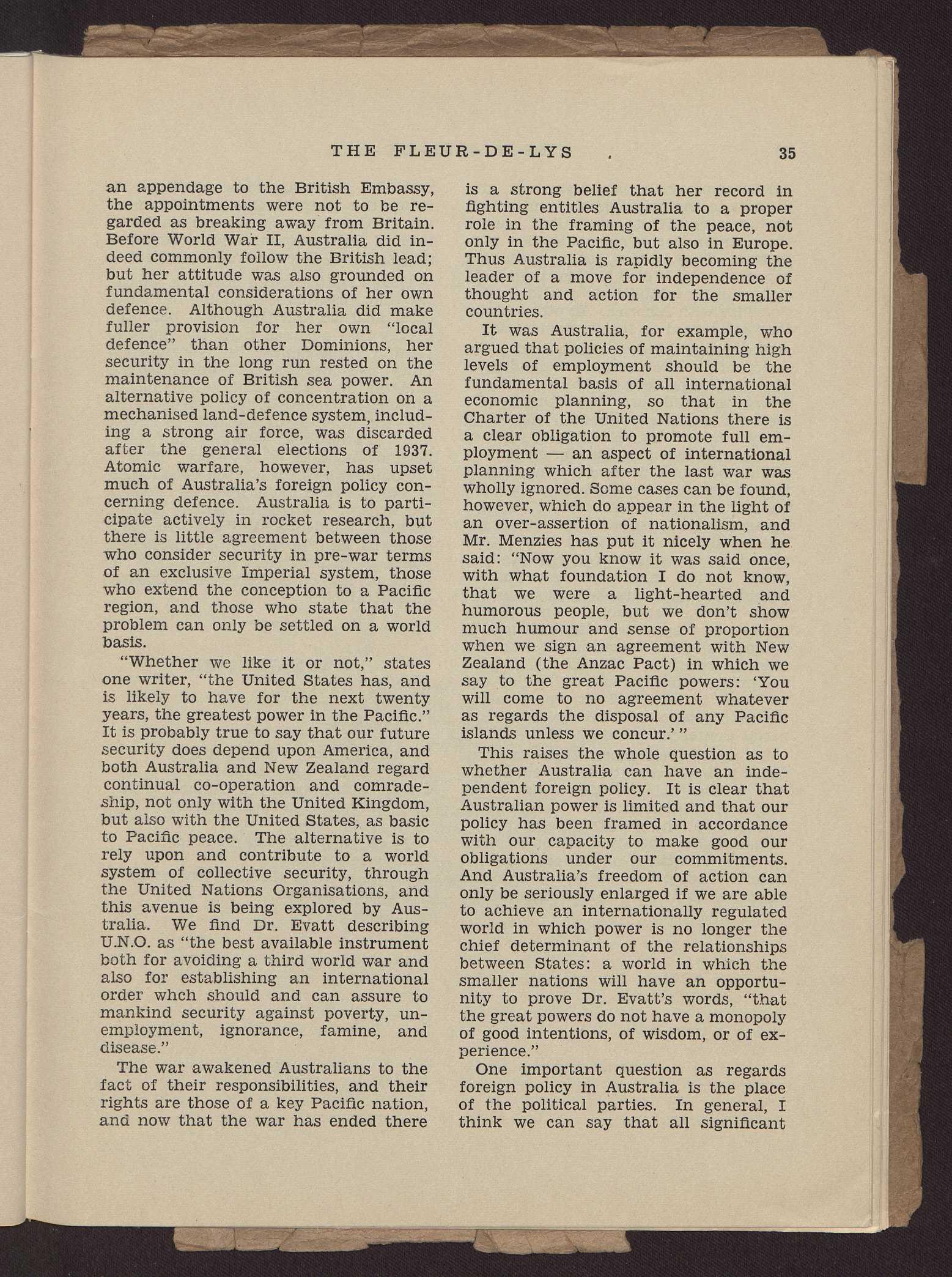He preferred not to deliver any formal lecture, but rather to give a general picture of his life and experience during his absence overseas. His underlying theme, however, was that good "teamwork" was largely responsible for Britain's share in the Allied victory. He thought that only this same spirit of co-operation would enable Britain to surmount her present difficulties in an aftermath in many ways grimmer than the war itself.
