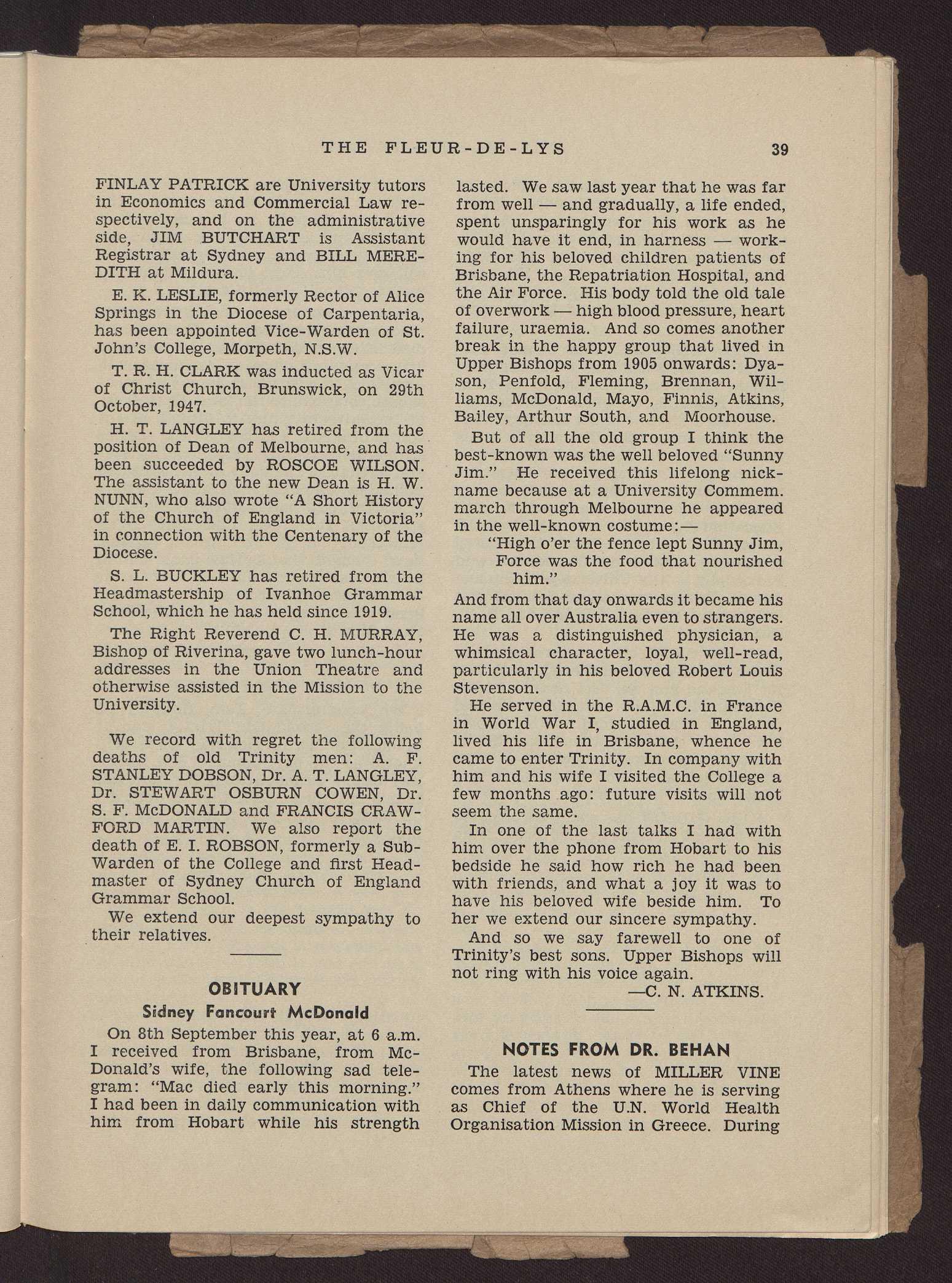 Our congratulations and best wishes go to Mr. A. G. L. Shaw on his appointment to the august office of Dean. The anomalies of the past are at last resolved.