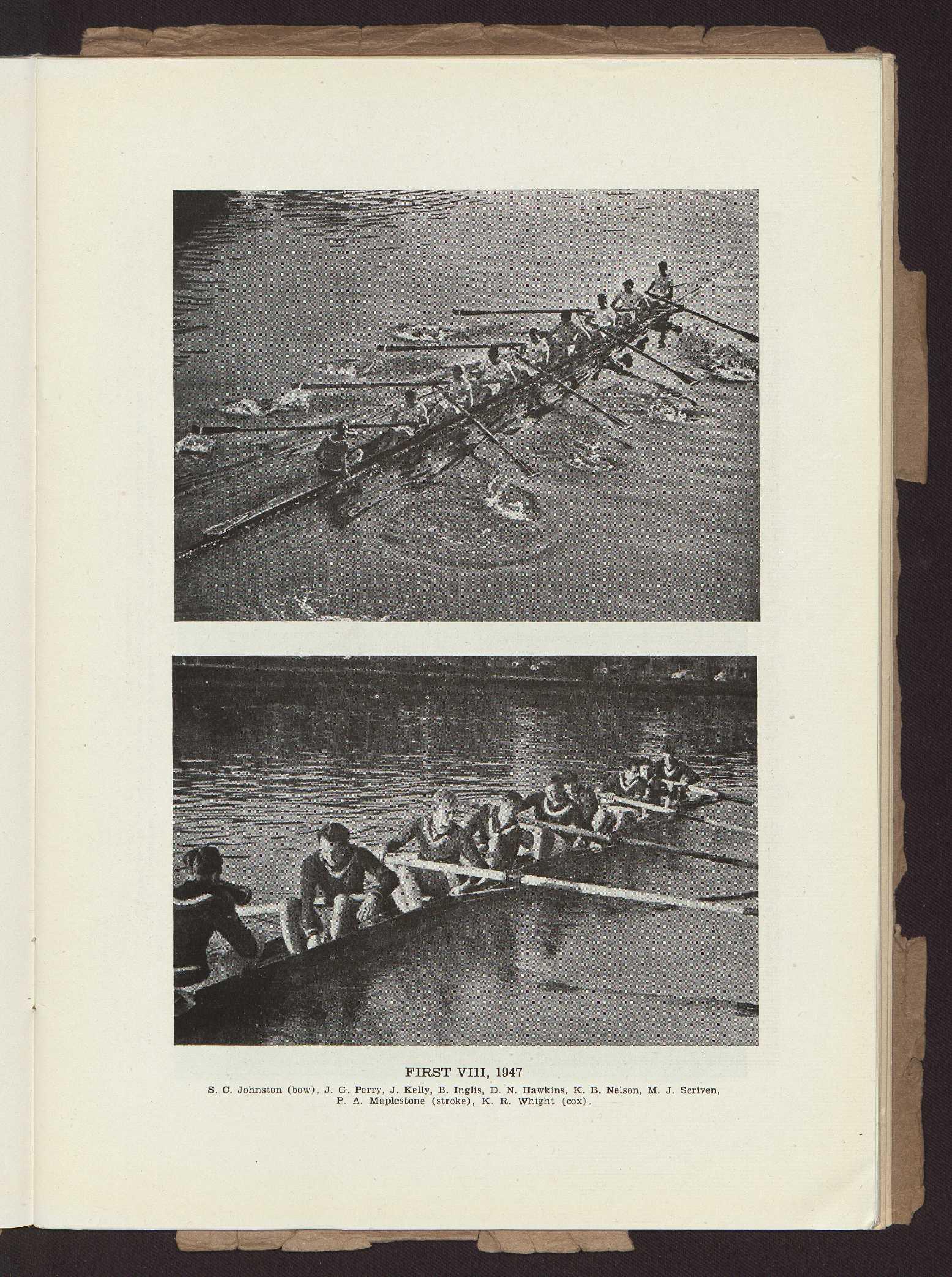 Bow, S. C. Johnston; 2, J. G. Perry; 3, J. A. Kelly; 4, B. S. Inglis; 5, D. N. Hawkins; 6, K. B. Nelson; 7, M. J. Striven; Stroke, P. A. Maplestone; Cox, K. J. S. Whight; Coach, J. Forbes, Esq.