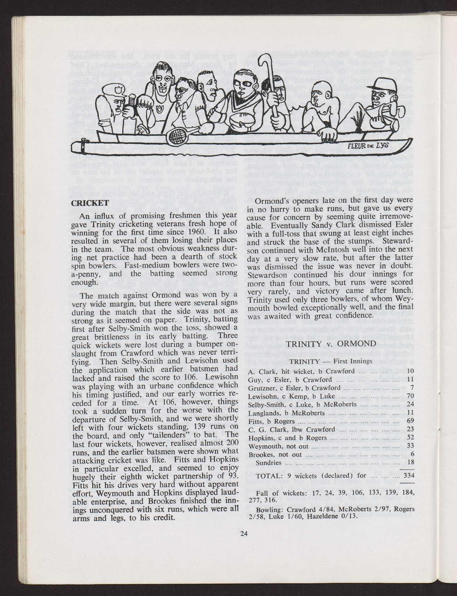 We must ask ourselves why we come into college. I think the first reason is the sheer convenience of living in college: Trinity would lose much of its attraction if it were ten miles from the University, or if we had to cook for ourselves.