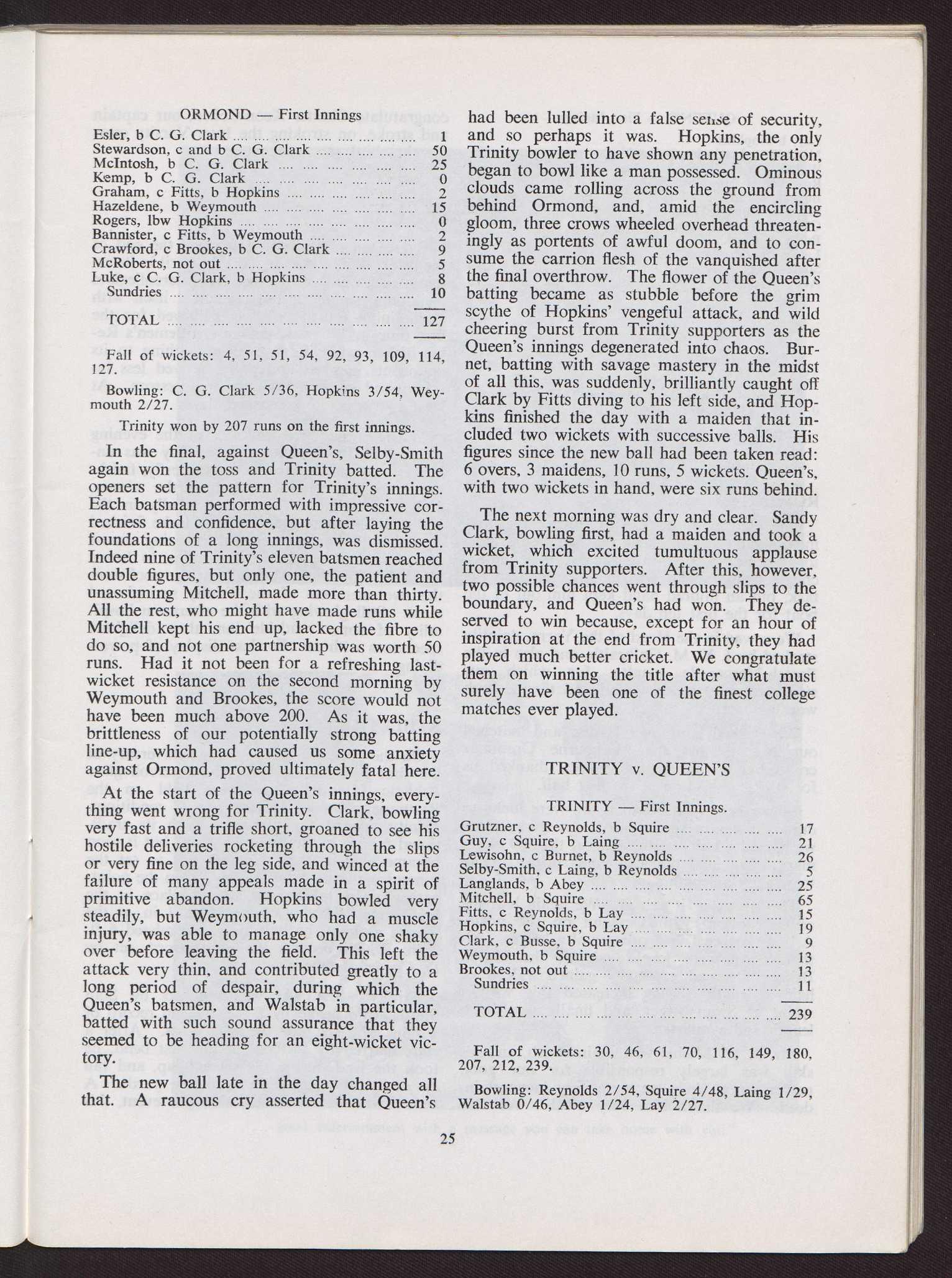 He need not have worried. He listened to all Dr. J. C. V. Behan's admirable advice, kept an open ear and open mind to the knowledgable views of Mr. Sydney Wynne, the Overseer, and ran the College as he thought it ought to be run. And when one says that for the first seven years nothing spectacular occurred, that in itself was a remarkable achievement in the unsettlement of the post-war years.