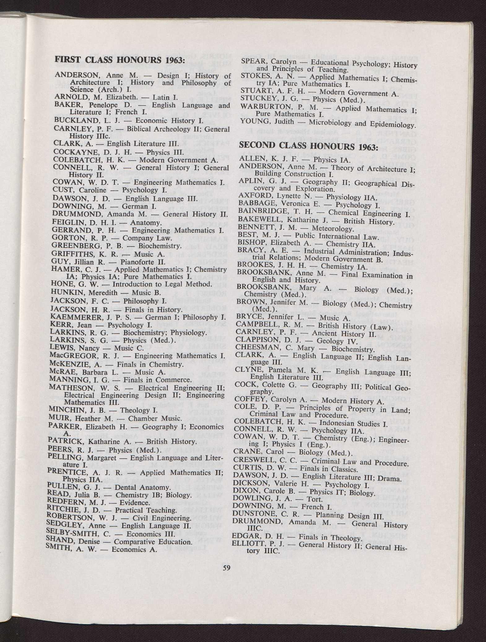 Annual Dinner, 1963, was held on Saturday, September 21, at J.C.H. As usual, it was a formal dinner, and there were 57 present. Guests were the Acting Principal, Dr. Knight; the Senior Student; the Matron; Mrs. Cowan; and the Presidents of St. Mary's Hall Past Students' Association, the Ormond Women, the Wyverna Club and the V.W.G.A. For the first time for many years Miss Joske was not present at the dinner as she was on holiday in New Zealand.