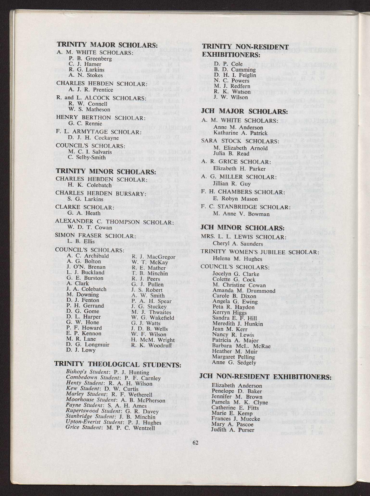 Mrs. Scantlebury had been a member of the J.C.H. Committee from 1926, and its chairman from 1939-60. Her love of the College and the wisdom and energy with which she translated it into action have been a great source of strength to J.C.H., and we mourn the passing of a greatly loved member of the Trinity Women's Society and a true friend of the College.