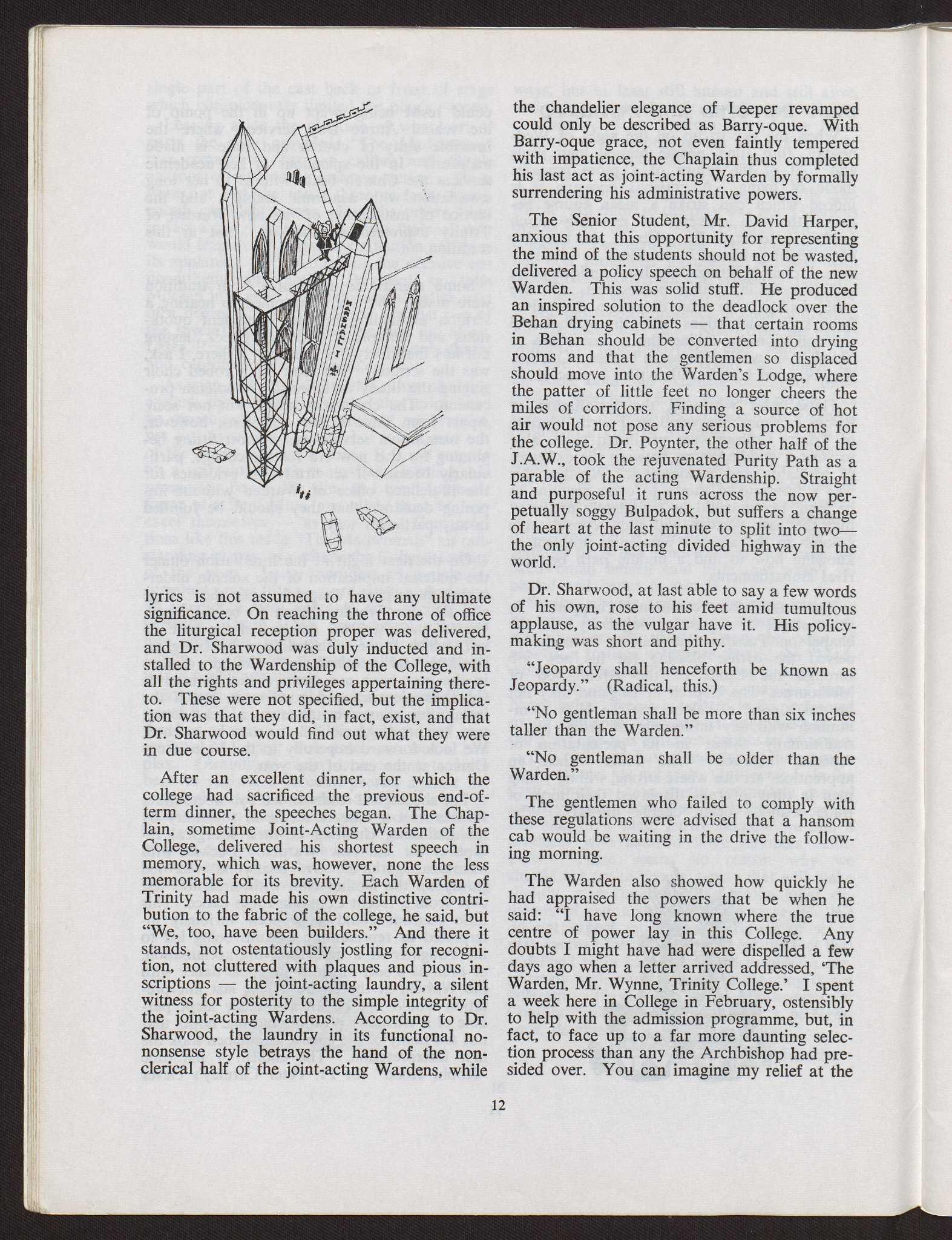 That is not to say that there will be no changes at all. I must be permitted to conduct the Wardenship in my own style and manner, as all my predecessors have done. There is no single image of the Warden of Trinity.