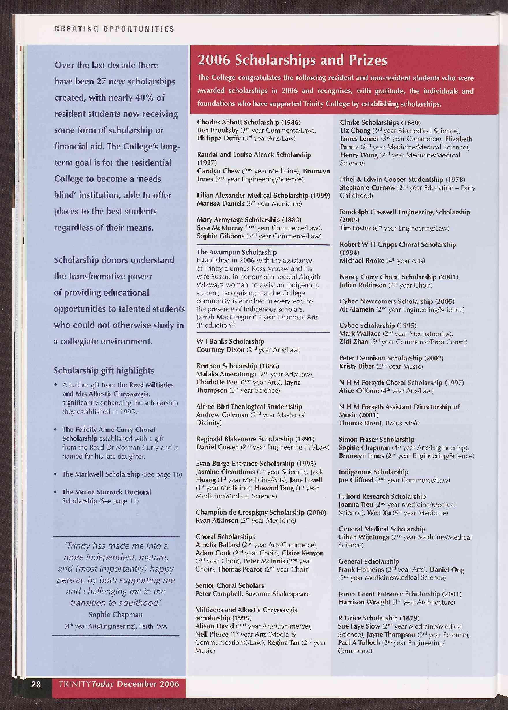 Among the Rhodes Scholars present was Trinity's 36", recipient and 2006 Australia-at-Large winner, Dr Harriet Gee (TC 1999), who has since commenced a DPhil in the Department of Immunology at Oxford. Harriet is researching how the immune system recognises and fights cancer.