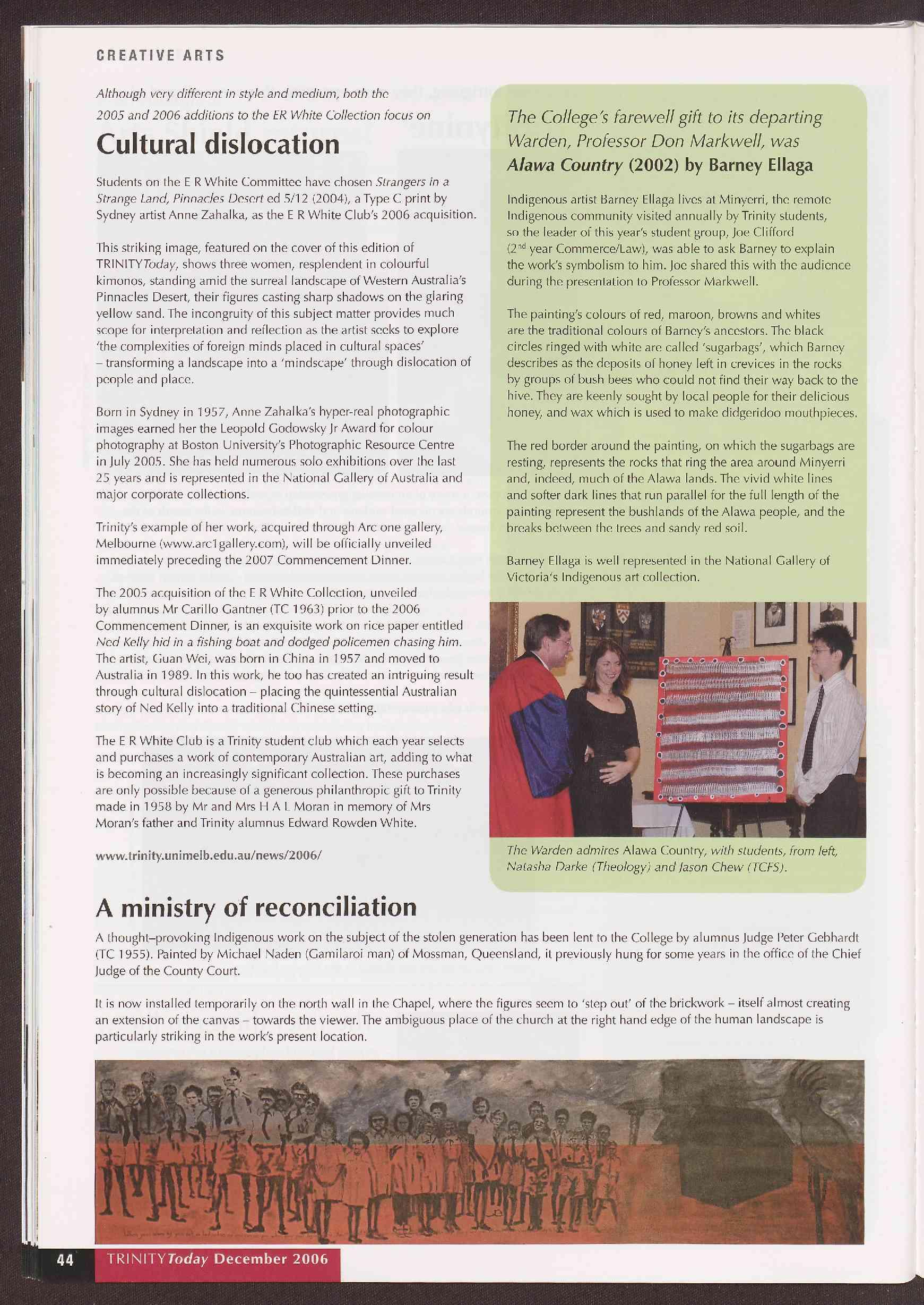 artist Anne Zahalka, is the E R White Club's 2006 acquisition. (See page 44)