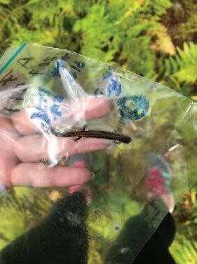 monica Hernández rodríguez '18 and her salamander peter passaro '18 and Caroline Barnett '18