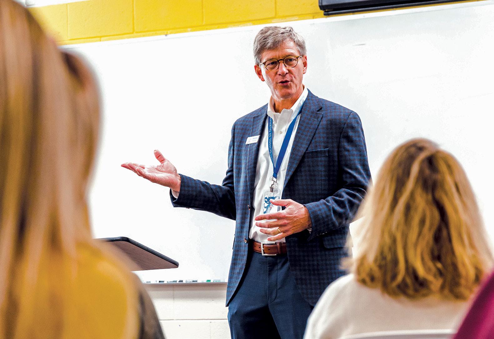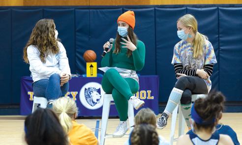 During a speaker lunch last spring, Mr. Mike Echsten kamper, the director of Athletes in Action at UNC-CH, came to talk with the athletes. The SALT team came up with questions and facilitated the discussion. Being a student-athlete can be stressful, so we asked Mr. Ech stenkamper to help us understand how to balance our ac tivities and stay motivated. He gave us great insights into all the ways school and sports benefit from each other, like stress relief and building mental toughness. He also taught us how to stay motivated and humble. After Mr. Echstenkamper’s talk, many athletes who had lost their spirit and competitiveness felt equipped to start fresh and grew excited again.