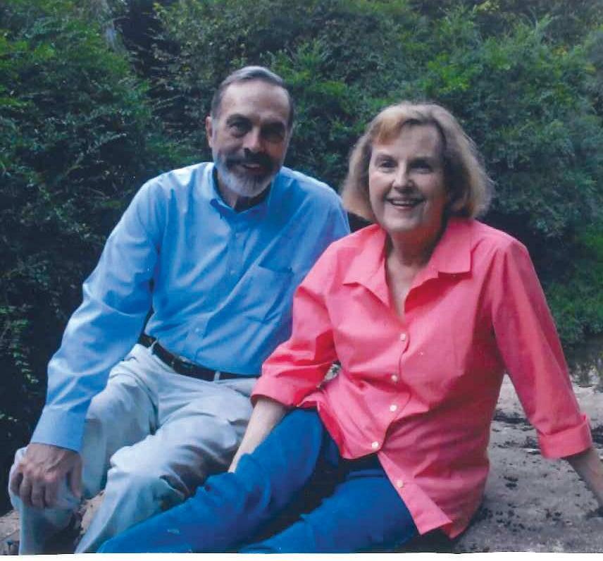 July 2006 – Wade and Carolyn Penny stand on the Hollow Rock outcrop on property along New Hope Creek that they sold to a land conservation interest. Their land and others help make up the more than 100 acres of preserve along Erwin Road now known as Hollow Rock Nature Park.