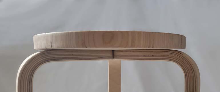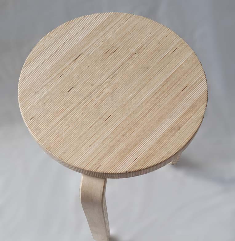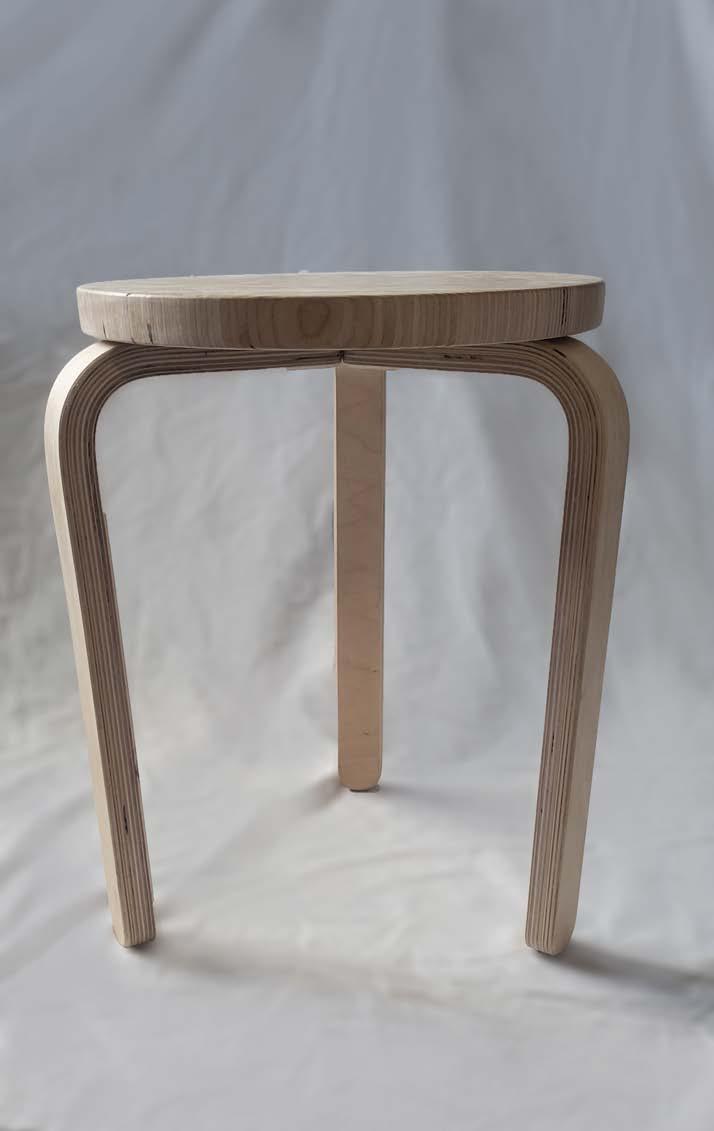 The stool was also created with off-cuts. It was made at the start of 2021 with baltic birch plywood. Baltic birch was extremely hard to get and so it felt a waste to throw away the scraps. Utilizing 1/8” to 3/4” thick scrap they were all cut into 2” strips. The legs went through a steam bending process and the top was a series of different strips glued to make one board. Then each piece was brought together to create the stool.