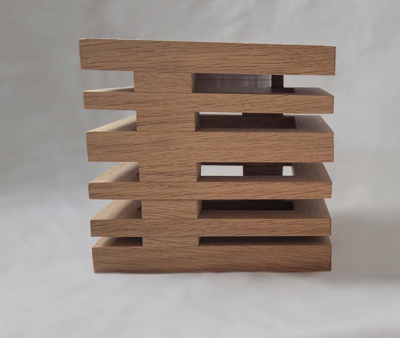 I worked in the University of Idaho Technical shop for many years. While collaborating with students and faculty I was often inspired. Both projects were created with the inspiration of maximizing materials. They were created with offcuts of other projects. The lamp is minimal but is made up of a series of 6” by ½” white oak strips. By utilizing the small off-cuts I was able to create a lovely table lamp.