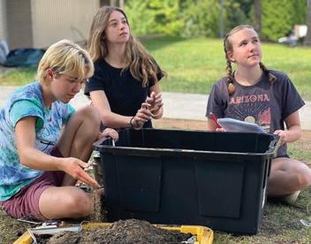 Students in the brand new Archaeology elective took to Dunn Courtyard to dig for clues about unknown, miniature civilizations. Groups created their own archeological sites in large, portable tubs — burying objects in several layers, and writing a backstory to be revealed over time through the artifacts buried within. The groups then swapped bins, excavating another group’s project without knowing anything about it — and reconstructing and interpreting the civilization through the creation of an archeological record.