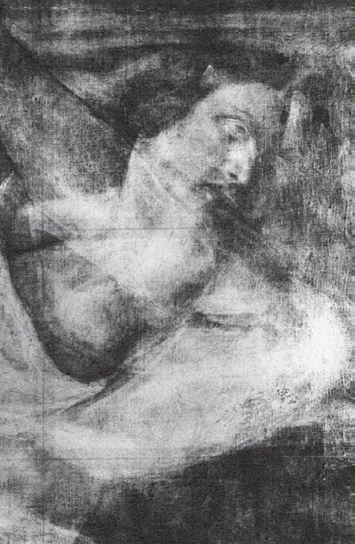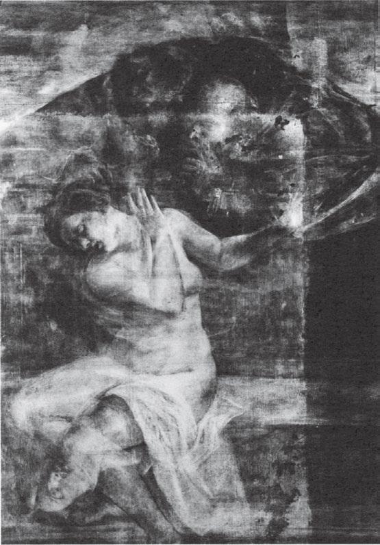 Yet a further reason for considering the ex-Koelliker Saint Jerome as the picture resulting from Molli’s month-long posing sessions with Orazio is the fact that X-radiographs (fig. 9) reveal that the composition was painted on a re-used canvas on which, in the upper left-hand corner, he had painted the head and shoulder of a female figure viewed in profile. Remarkably, a similar head study appears in an X-Radiograph of the Susanna and the Elders signed by Artemisia and dated 1610 (figs 10, 11).35 Orazio must have done similar studies in preparation for his work on the vault of Scipione Borghese’s Casino delle Muse, which was underway in 1611. Indeed, Orazio must have made numerous head studies, both painted and drawn, throughout his career (he continued to employ models in London, where his costs were covered by the crown for hiring both male and female models: “tanto di femine quanto di huomini”36). It’s well to remember that