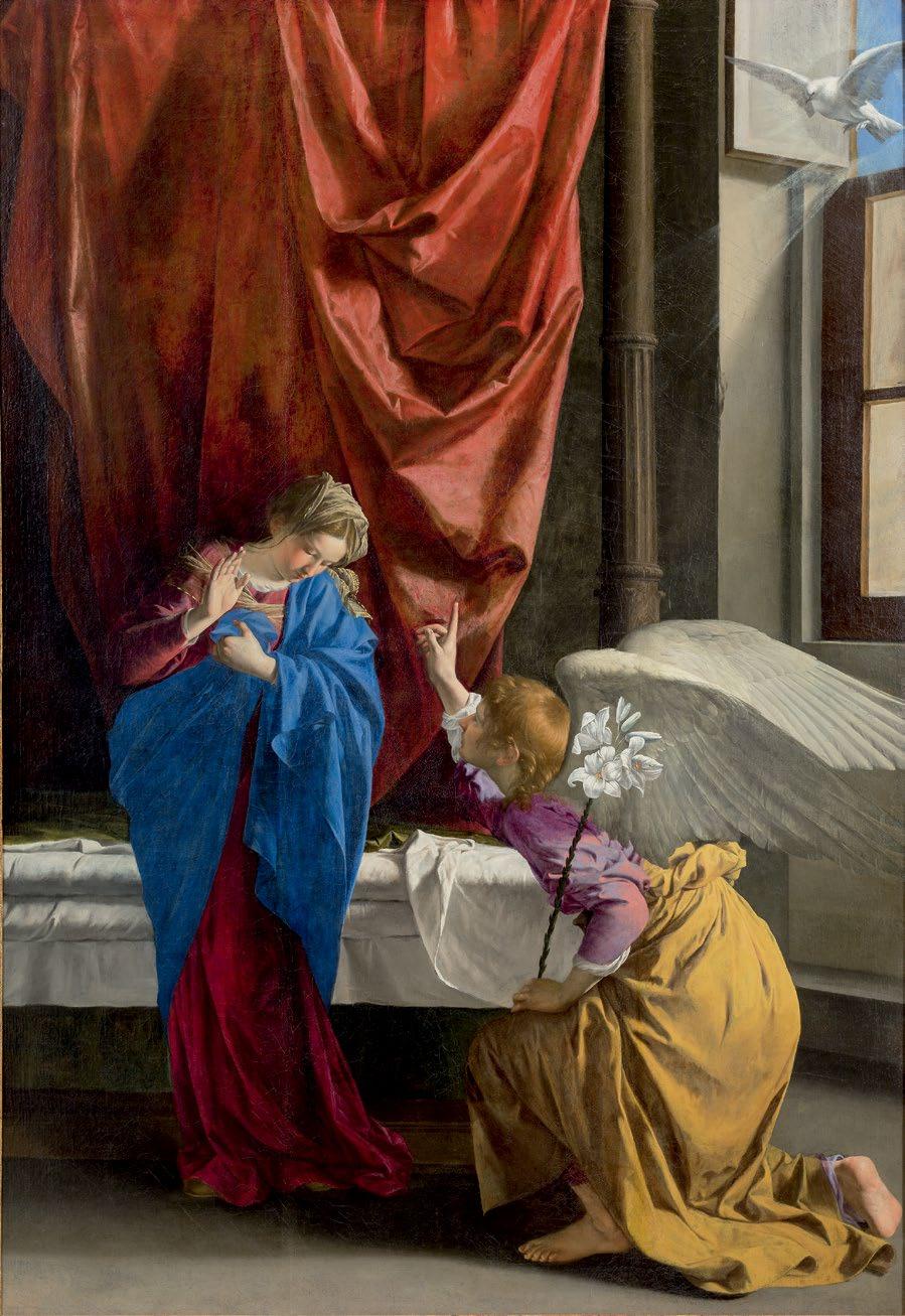 culture and it inscribed an itinerary that took him from the rough and tumble populist quarter of via del Babuino in Rome, where Orazio and his family lived from 1599 to 1611, to quarters in the palace of his major Roman patron, Paolo Savelli, to Genoa, where, accompanied by his three sons, he worked for the great families of the maritime republic, including the Doria, and on to the royal courts of Paris and London, where he found favor with Marie de’ Medici and the young Queen Henrietta Maria. Along the way he left masterpieces that elicit constant surprise for their ever evolving combination of formal inventiveness, coloristic brilliance, and, most singularly, their exploration of the varied effects of light, which play over the forms rather than merely illuminating them, thereby creating a mood of heightened sensibility. Writing about the Turin Annunciation in his groundbreaking article of 1916, Roberto Longhi identified Orazio’s exploration of light and color as his most original contribution to Italian art, pointedly describing its character and quality as seen in the Annunciation: