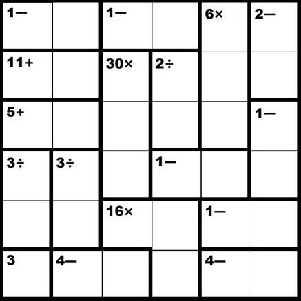 KenKen is a grid-based logic and math puzzle where players fill an N×N grid with numbers 1 to N Each number must appear exactly once in every row and column, similar to Sudoku. The grid is divided into “cages” outlined in bold, each labeled with a target number and a mathematical operation (+, , ×, ÷)