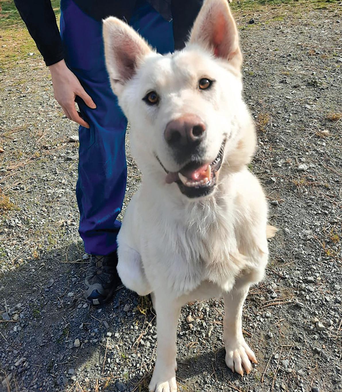This beauty is Flour, she is about 2 years old and is spayed now! This girl is such a good dog! We believe she is a German Shepherd mix, possibly with some husky. She has tons of energy and willingness to please, but she definitely needs some work with her manners. Flour seems to be OK with cats with proper introductions and supervision. She has been introduced to a couple submissive dogs and does present as a dominant female, but has not shown aggressive yet. We believe she’d be good in a home with a submissive dog who won’t challenge her too much. Otherwise she absolutely loves to play! She also does very well on a leash! If you are interested in adopting Flour call the Trinity County Animal Shelter at 530-623-1370.
