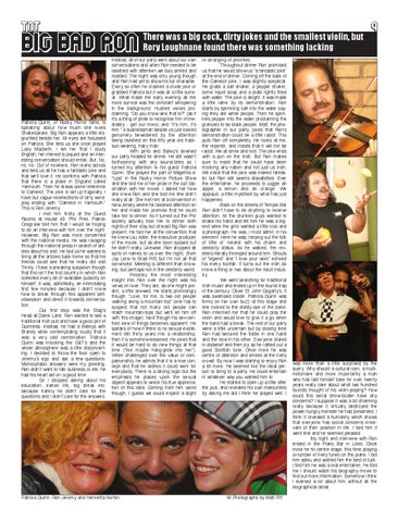 re-arranging of priorities. Throughout dinner Ron promised us that he would show us “a fantastic joke” at the end of dinner. Coming off the back of the Camelot joke, I was slightly sceptical. He grabs a salt shaker, a pepper shaker, some liquid soap and a plate lightly filled with water. The joke is alright. It was made a little lame by its demonstration. Ron starts by sprinkling salt into the water saying they are white people. Then he sprinkles pepper into the water proclaiming the granules to be black people. Matt, the photographer in our party, jokes that Ron’s demonstration could be a little racist. This puts Ron off completely. He looks at me, the reporter, and insists that it will not be racist. We all smile and nod. The joke ends with a pun on the Irish. But Ron makes sure to insist that he could have been mocking any nation and not just us Irish. We insist that the joke was indeed fantastic but Ron still seems dissatisfied. Ever the entertainer, he proceeds to juggle an apple, a lemon and an orange. We applaud, a little mystified by what has just happened. Back on the streets of Temple Bar Ron didn’t have to do anything to receive attention. All the drunken guys wanted to shake his hand and tell him he was a legend while the girls wanted a little kiss and a photograph. He was, I must admit, in his element. Here he was, helping out the folk of little ol’ Ireland with his charm and celebrity status. As he walked, the revellers literally thronged around him. Shouts of “legend” and “I love your work” echoed his every footfall. It turns out the Irish do know a thing or two about the Adult industry. We went searching for traditional Irish music and ended up in the tourist trap of the century- Oliver St. John Gogarty’s. It was swamped inside. Patricia Quinn was firmly on her own buzz at this stage and she rocked to the diddly-aye of the band. Ron informed me that he could play the violin and would love to give it a go when the band had a break. The rest of our party were a little uncertain but by closing time Ron had secured the fiddle in one hand and the bow in his other. Everyone stared in disbelief and then joy as he rattled out a good Scottish tune. Once more he was centre of attention and smiled at the lively crowd. By now I was starting to enjoy Ron a bit more. He seemed like the ideal person to bring to a party. He could entertain in whatever way you wanted him to. He started to open up a little after the pub, and revealed his own insecurities by asking me did I think he played well. I