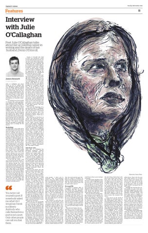 Illustration: Naoise Dolan come people / I don’t care ta mention.” The heart-breaking poems about her father’s death that were published in 2000 still use a speaking voice, but it is her own. It is one of pure grief, but it remains honest and unworked. O’ Callaghan is up front about her lack of technical poetic knowledge: “I have no notions whatsoever. I don’t know anything about poetry. Rhymes, metres and all that. It’s just not happening up there.” The patterns of human speech are what give structure to her verse. However, one suspects that she might know a bit more than she lets on. Her modesty is such that she will not even call herself a poet: “You never call yourself a poet. If somebody asked me what I do I would say I work in a library. Anybody who calls themselves a poet is not a poet. Only other people can call you that. It’s such a high up thing that you can never say that about yourself without sounding kind of smarmy. I would never presume to call myself such a thing, especially in Ireland. Even Seamus Heaney never called himself a poet. He was filling in a form once to register his kids for school in Wicklow. He had to write down his occupation and the school told him to write