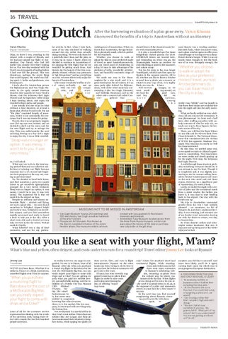 “Sleep was no longer an option. It was messy, I won’t lie to you. It was very messy.” en, I will admit. What were we to do in the intervening period? Bemoan our collective misfortune at missing our flight because someone (not I, of course) had forgotten their passport on the way out, costing us precious time? No. We decided to head back home, and find ourselves a party (or maybe three) to get ourselves appropriately pumped for a very hectic weekend. Sleep was no longer an option. It was messy, I won’t lie to you. It was very messy. The important bit is that we made it to the airport on time. Despite an arduous and almost unbearable flight – alcohol and flying, not such a good idea – we soon found ourselves in Schiphol Airport bright and early at 7am. Schiphol is an incredible airport, and you find yourselves rapidly processed and ready to board a train to take you to the city. After a short train ride and a shorter yet tram ride, we were in the city centre. We had made it. Finally. What followed was a day of fond memories, and not for any particu-