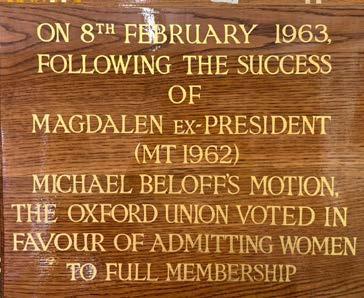 The part played by Michael Beloff, President 1996-2006, that led to the Oxford Union voting to admit women in February 1963, has been commemorated with a plaque that was unveiled in June, and hangs above the entrance to the Union’s library. The Union voted to admit women to full membership following a motion proposed by Michael, the then previous Union president. The date for the unveiling of the plaque was chosen to coincide with a significant moment in the Union’s history: for the first time, all four senior officers are women. The current Union president, Anita Okunde (Magdalen 2022), unveiled the plaque with Michael. Michael has continued his support for gender equality, recently by providing legal advice that led, last year, to the Garrick Club admitting women members for the first time.