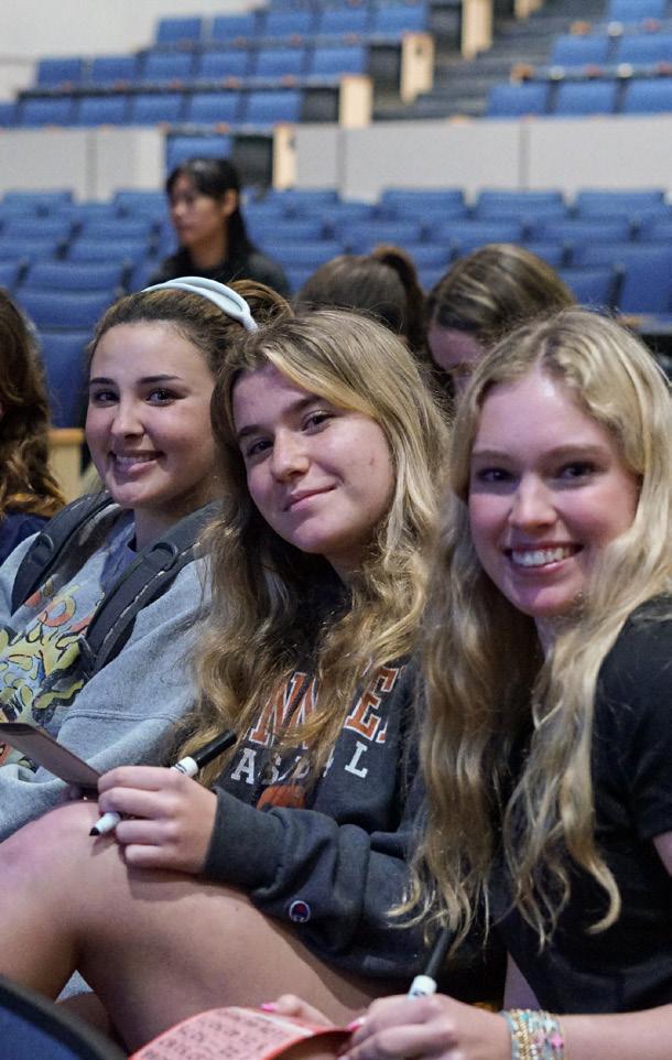 fostered laughter and created lasting memories. Activities like an intense game of Trinity Trivia ignited everyone’s competitive spirit, while Headmaster’s Day had both bigs and littles cheering each other on during the water-balloon toss. “The duck hunt was my favorite,” said Trinity Prep parent Bridget Hawley. “Seeing seniors let loose and enjoy themselves while creating those goofy photos—that’s where the magic happens.”