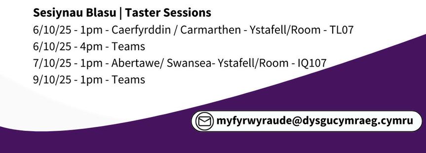 Ebostiwch hwb@pcydds.ac.uk am fwy