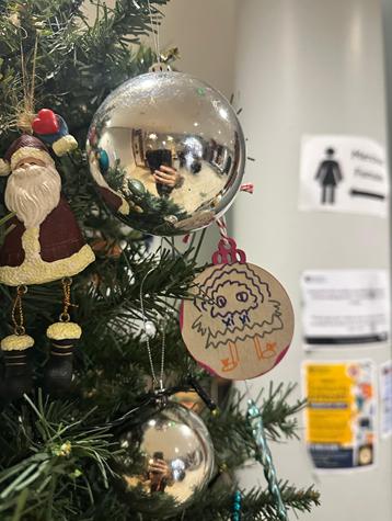 Whilstenjoyingsomemincepiesandhotchocolatesthey alsocreatedtheirownbaublestohangontheChristmas tree.