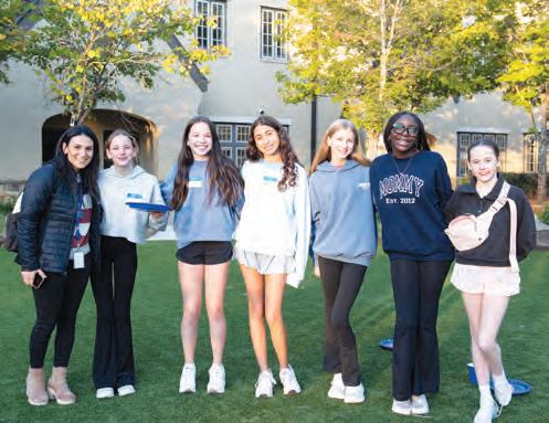 Extended Programs Assistant Director Michelle Townsend poses with Vivian Corey ’24, Kinsley Powers ’24, Talya Colombowala ’24, Poppy Dixon ’24, Adiele Akinwumi ’24, and Margaret Bailey Blackwood ’24.