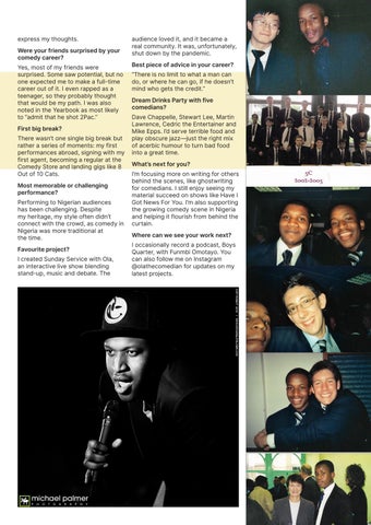 Where can we see your work next? I occasionally record a podcast, Boys Quarter, with Funmbi Omotayo. You can also follow me on Instagram @olathecomedian for updates on my latest projects.