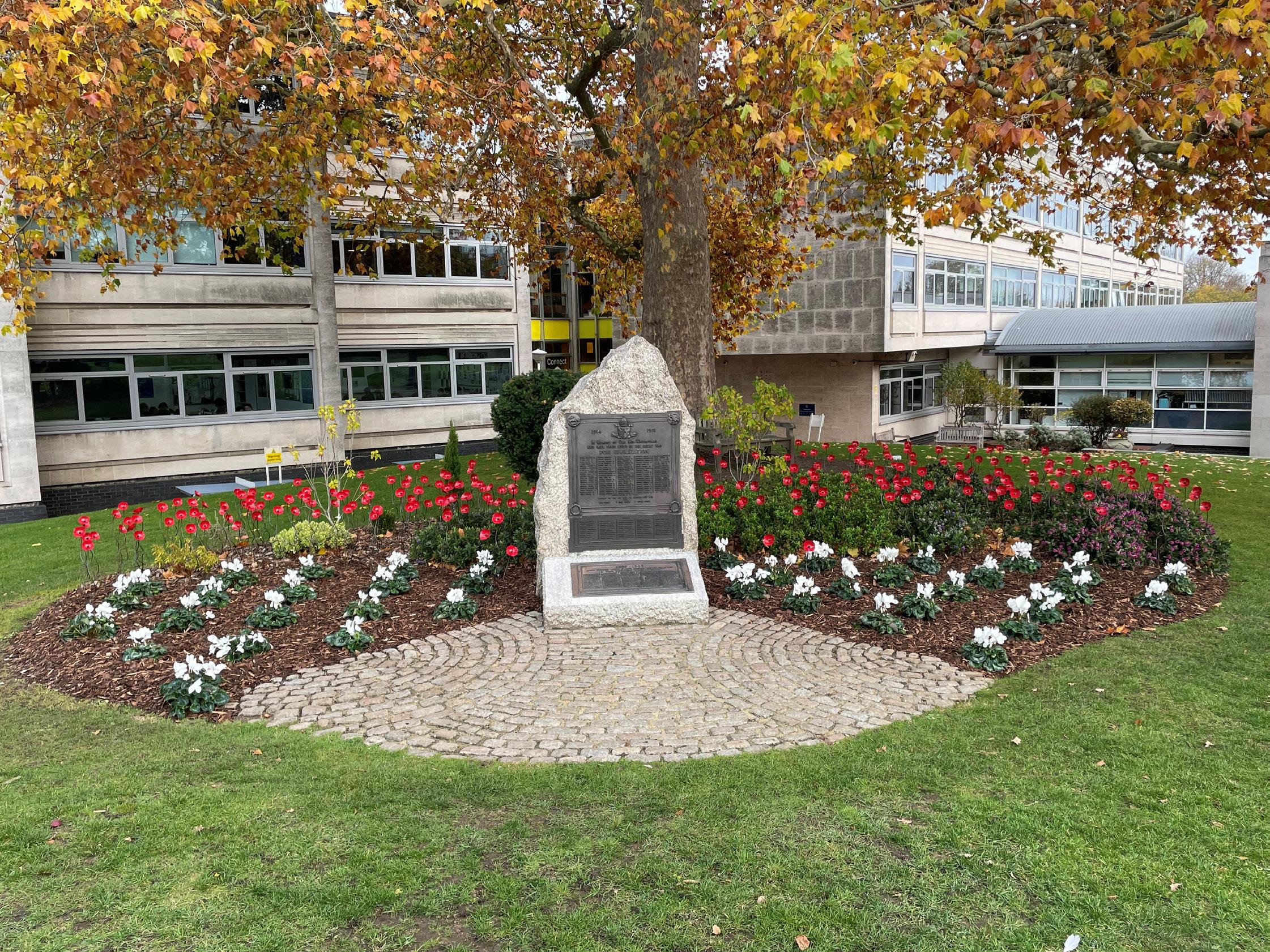 Following the Second World War the memorial was expanded once again. A bronze plaque listing the names of 88 Old Boys who died between 1939 and 1945 was added, and the updated memorial was dedicated on 29 June 1949 by the Headmaster, Horace Clayton. When the school moved to its present site at Shirley Park in 1965 and adopted the name Trinity School of John Whitgift, the memorial was relocated to its current position. Over time the surrounding landscape has changed, but the memorial remains a place of quiet reflection within the school grounds.