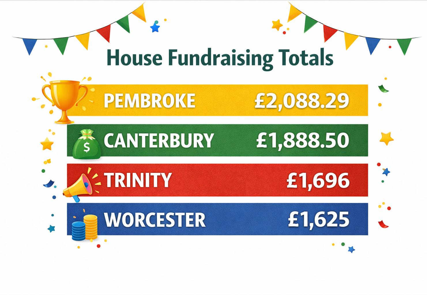 To add a sense of friendly competition, fundraising has been tracked across the Houses.