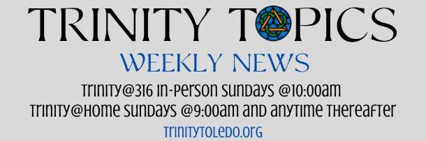 June15-OnthethirdThursdayofeachmonth,Trinity preparesanddeliverslunchtothevendorsofourcommunity partner,ToledoStreetsNewspaper(TSN).Wewillneedyour helpnextonThursday,May18whenwewillgatherat9:00am upstairsinMyBrother'sPlacetopreparethemeal!At10:00, we'llheadovertotheTSNofficestodeliverthemealand spendsometimewiththevendors.Clicktheimagetojoinourteam!!!