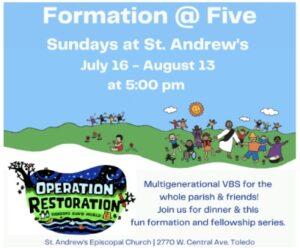 July16-TrinityFamiliesareencouragedtoconsidergoingto oneormoreofthefiveSundayeveningIntergenerational SummerCampgatheringsofferedbyStAndrew’sToledo. Familiescomeandstaytoparticipatetogether.FiveSundays from5:00-8:00pmstartingJuly16th.Ifinterestedpleaseclick ontheimageformoreinformation.