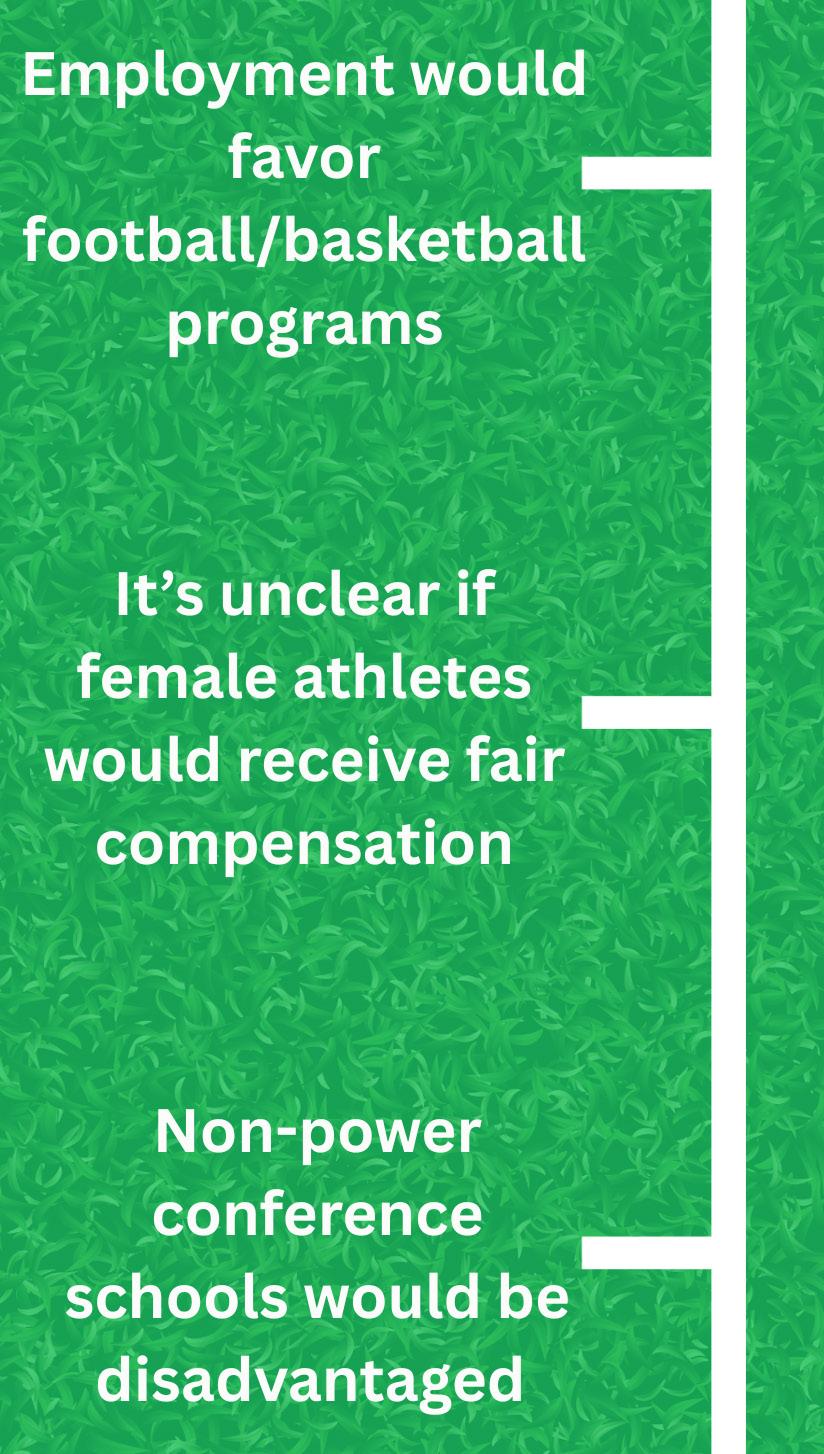 Despite the revenue from major sports, giving employee status to all athletes could be unsustainable for many schools. To account for extra pay and benefits, schools might start cutting their smaller, less profitable programs, only keeping football, basketball and other big money sports.