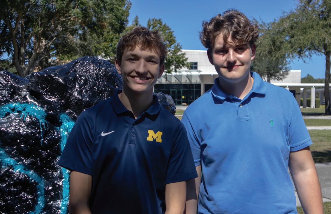 Freshman Olliver Polsinelli poses for a photo with French exchange student Louis Zannier.