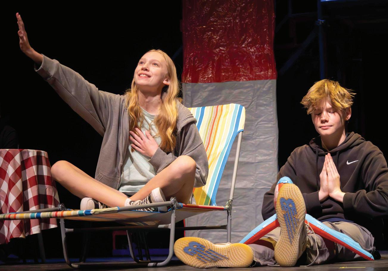 Seventh graders Lilia Ashcraft and Gabriel Rupp rehearsing for “ e Perils of Lulu,” which ran Feb. 28 - March 2.
