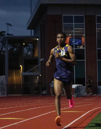 Senior Caden Clifton (above) and junior Lindsey Yared (top left) competed in a track meet at Bishop Moore Catholic on Feb. 23.