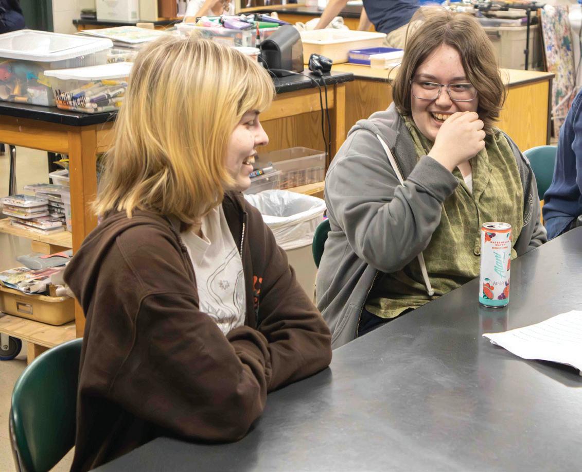 Victory Hayes ’29 and Gabby Aaron ’29 enjoy the Indian booth at Culture Fest on Feb. 22. e girls were able to try on traditional Indian clothing and jewelry.