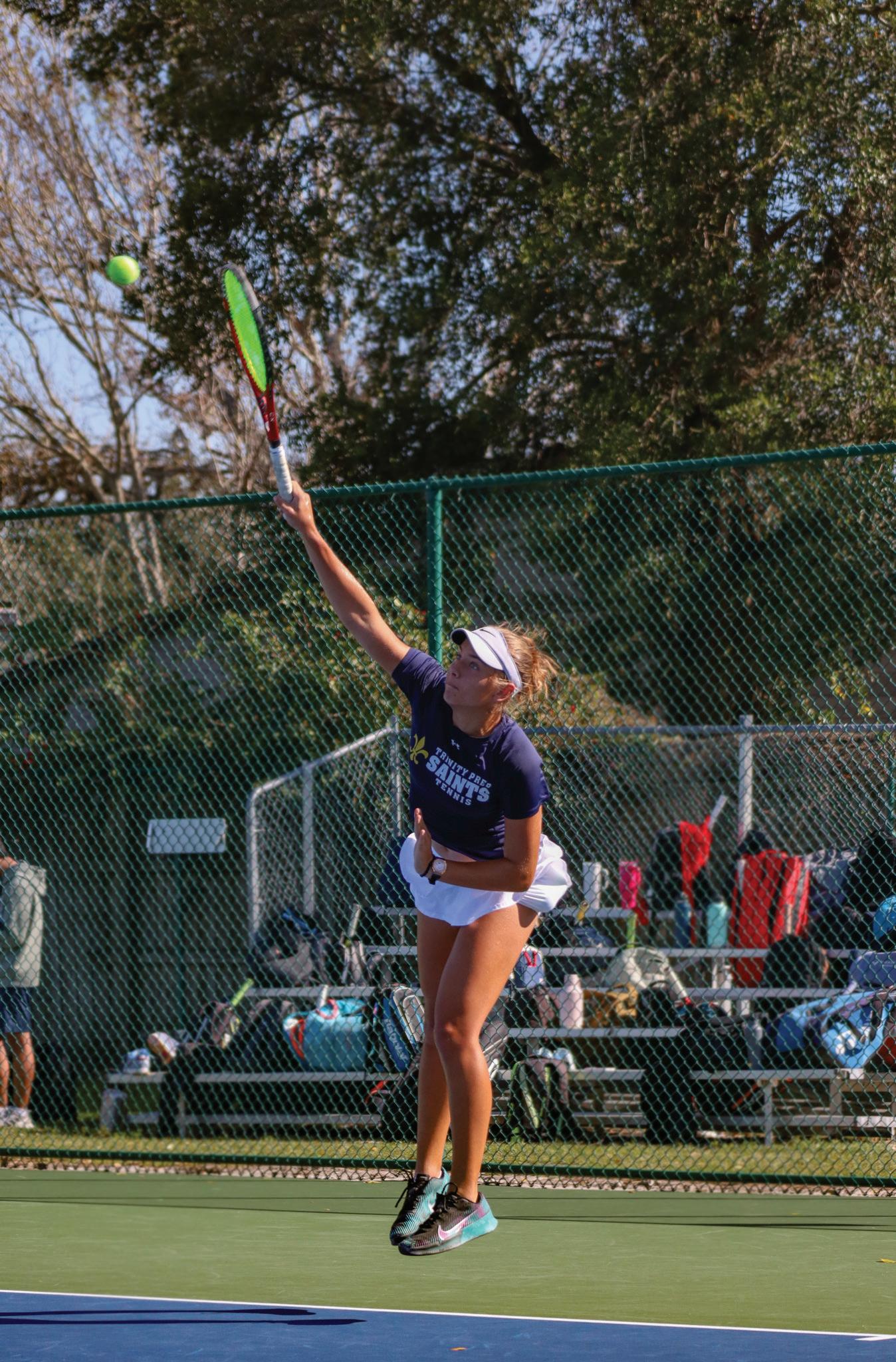 Senior Isabella Hartung serving the ball during the match against Lake Highland.