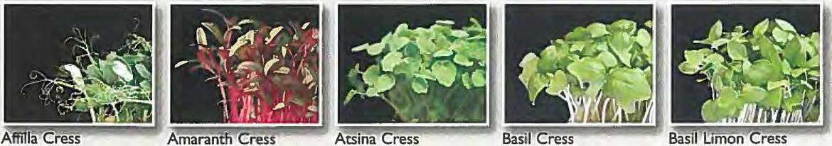 Content: Afr.Ila Cress, Borage Cress, Sakura Cress. Sh1so Purple Cress,Tahoon Cress and another mystery vanety