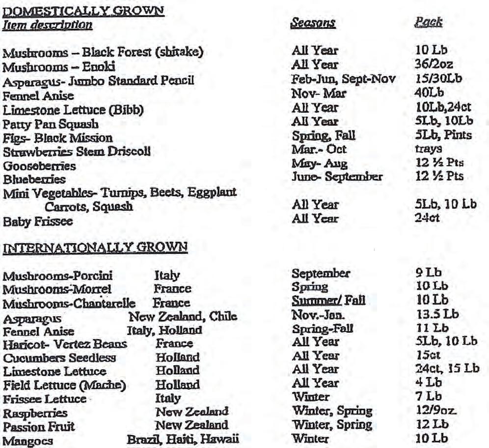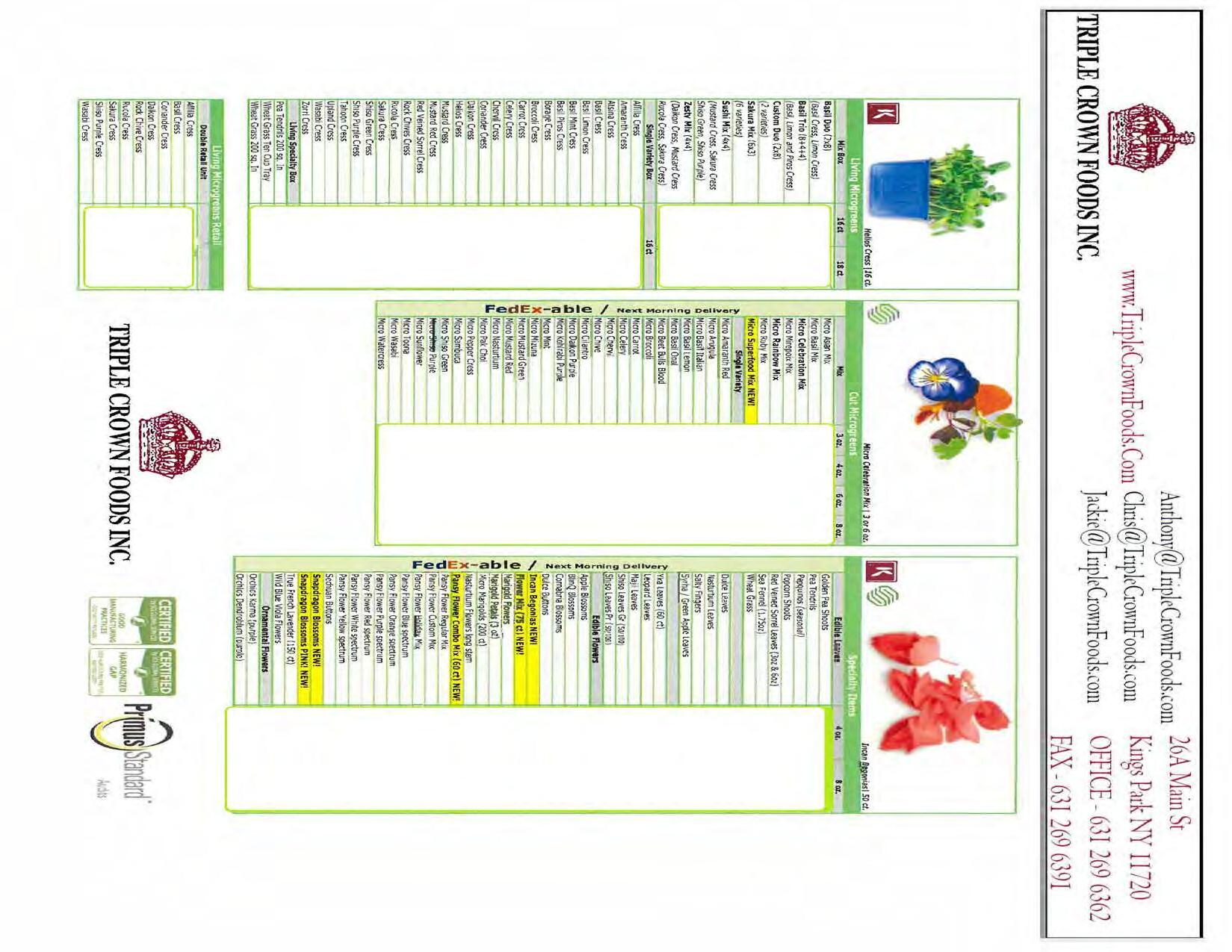 TRIPLE CROWN FOODS INC. IS A NATIONALLY REGOCOGNIZED ORGANIZATION THATS BEEN A SUCCESSFUL QUALITY ORIENTED DISTRIBUTOR OF FRESH PRODUCE AND FOOD SERVICE PROVIDERS FOR OVER 40 YEARS. THE MAJORITY OF OUR PRODUCE IS PURCHASED DIRECTLY FROM THE WEST COAST, THUS LOWERING YOUR FOOD COST DUE TO FRESHNESS AND SUPERIOR PRODUCT YIELD WE DO WHAT OUR COMPETITORS CAN NOT PRESENTLY, WE HAVE THREE FULL LINE PRODUCE DISTRIBUTION CENTERS, TWO OF WHICH ARE LOCATED ON THE EAST COAST AND ONE ON THE WEST COAST ON THE EAST COAST, WE HAVE A NORTHERN PLANT LOCATED IN NEW YORK, AND A SOUTHERN PLANT LOCATED IN NORTHERN MIAMI, FLORIDA. WE OPERATE 45 TRUCKS OUT OF OUR MODERN 126,000 SQUARE NEW YORK WAREHOUSE ALONE; COVERING A 12 5 MILE RADIUS OF NEW YORK CITY, AND OPERATE 10 TRUCKS AND 8 TRAILERS THROUGHOUT THE FLORIDA REGION OUR THIRD LOCATION IS IN THE LOS ANGELES PRODUCE MARKET, CALIFORNIA, WHICH SERVES THE WESTCOAST. ALL DELIVERIES ARE MADE IN SANITIZED REFRIGERATED TRAILERS