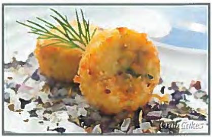 Onyourdinnermenuasanappetizer: Dinneroftwocakesoverpastaormixedgreensorasa greatadditiontoyourseafoodspecialorbuffet.