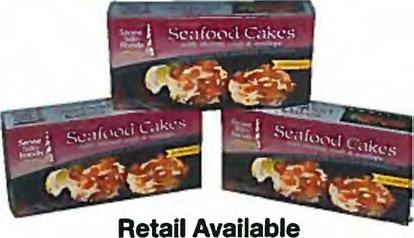 Hand made using a blend ofshrimp, crab, and scallops. Ourincredibleseafood cakes contain no fillers ofany kind. Hand formed for that "In house"look without thein house work. Our seafood cakes are fullycooked. Just brown andserve. Our uniqueseafood cake is so versatile it willserve allyour menu needs. Used from family restaurants to country clubs and hotels. The skies the limit.