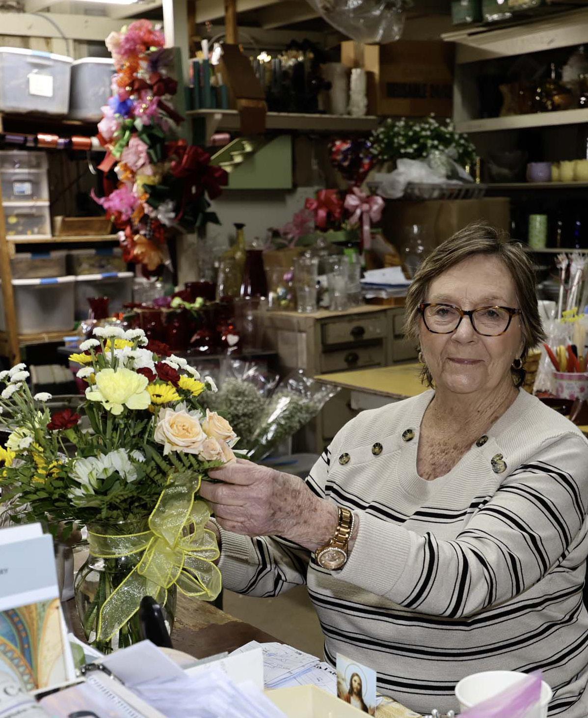 Top right: Delores Wick has owned and operated The Flower Box for over 40 years creating arrangements for every occasion.
