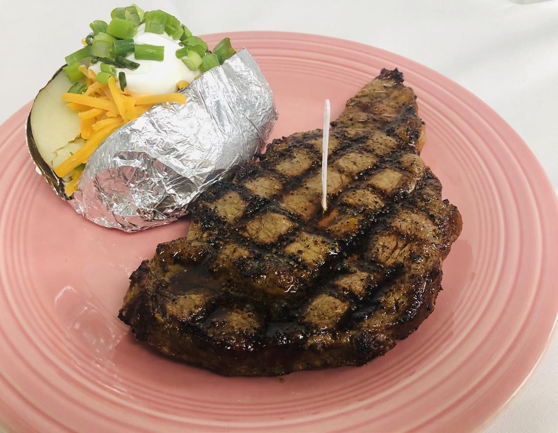 Top: A plate from Kloesel’s Steakhouse in Moulton features hand-cut steaks, classic sides and homemade favorites served in a historic setting.