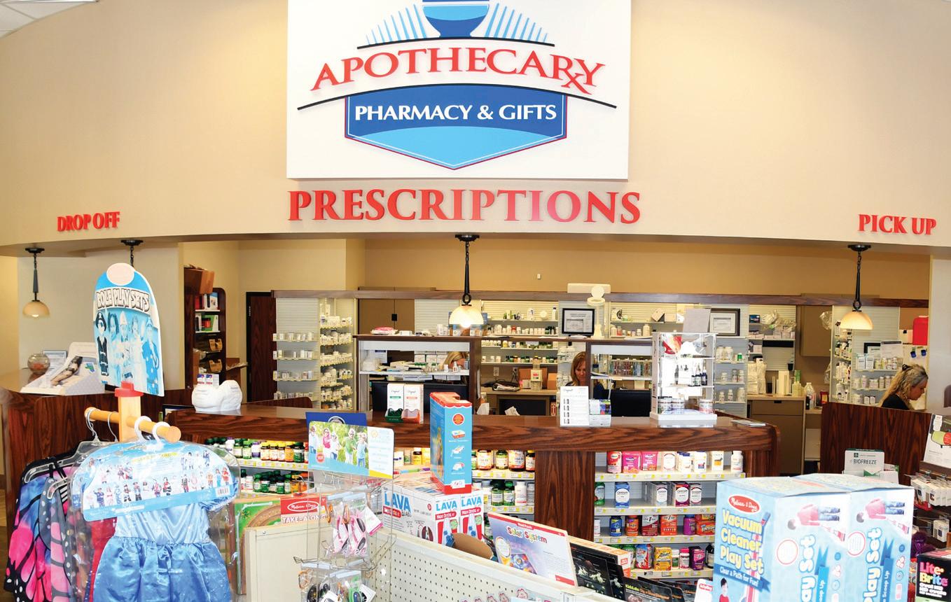 PHARMACY AND GIFT SHOPPE - Here you’ll find a local shop that strives to be the hometown pharmacy that you can trust. Skip the long lines and endless wait times that you may find at other pharmacies. You’ll receive reliable, quick, and professional service every time. Compounding and free delivery are also offered. In addition to the phramacy, Apothecary stocks a wide variety of gifts for all ages, home décor and dry cleaning services.