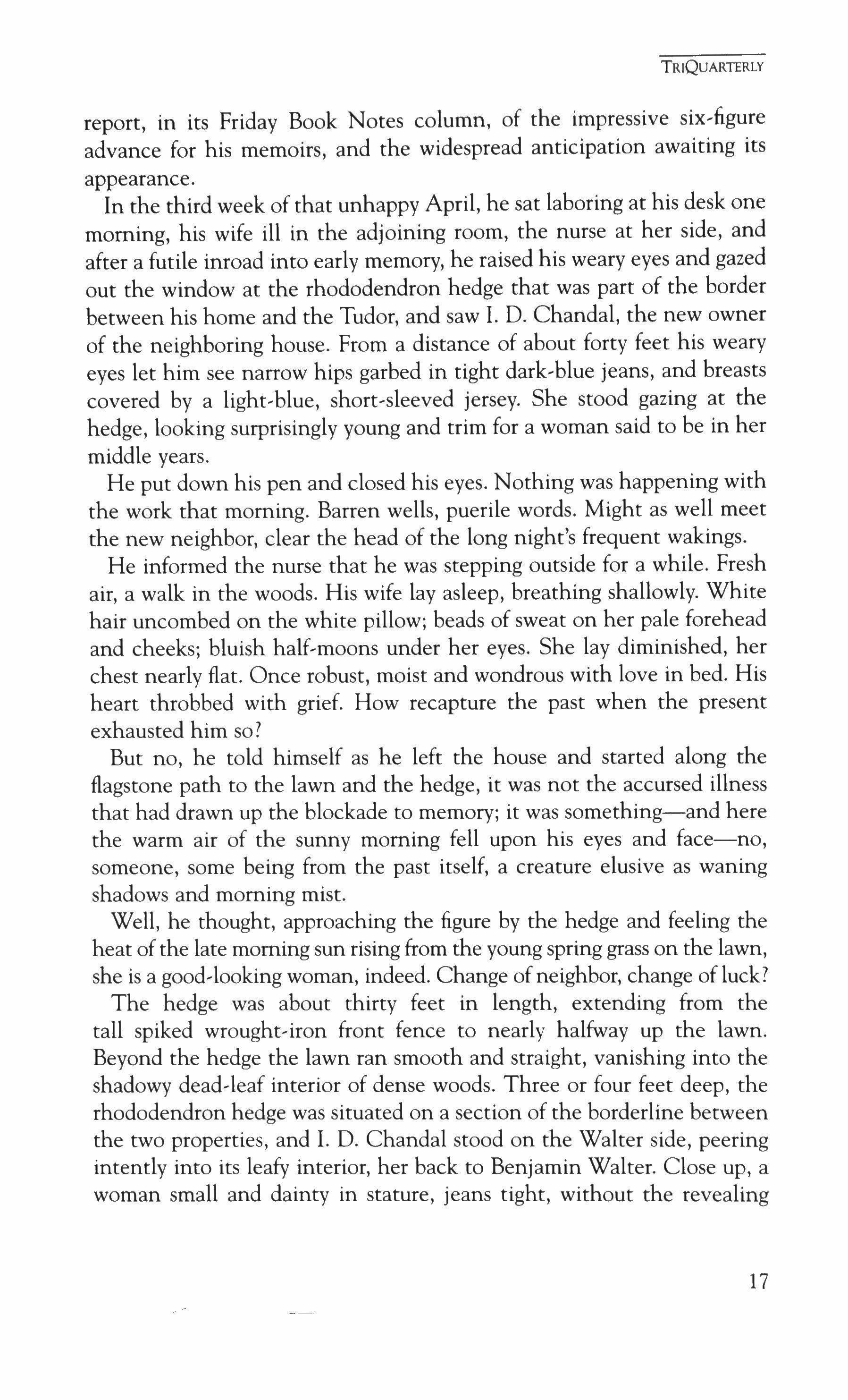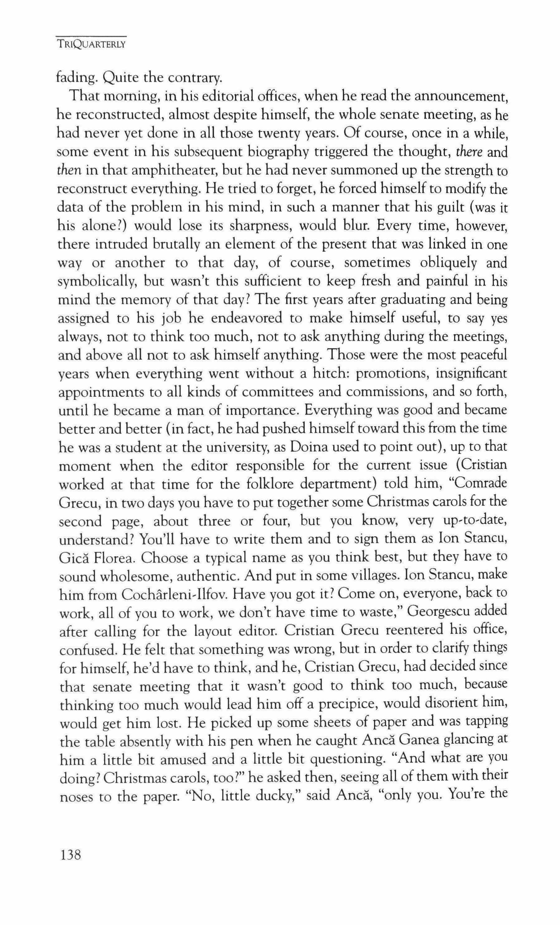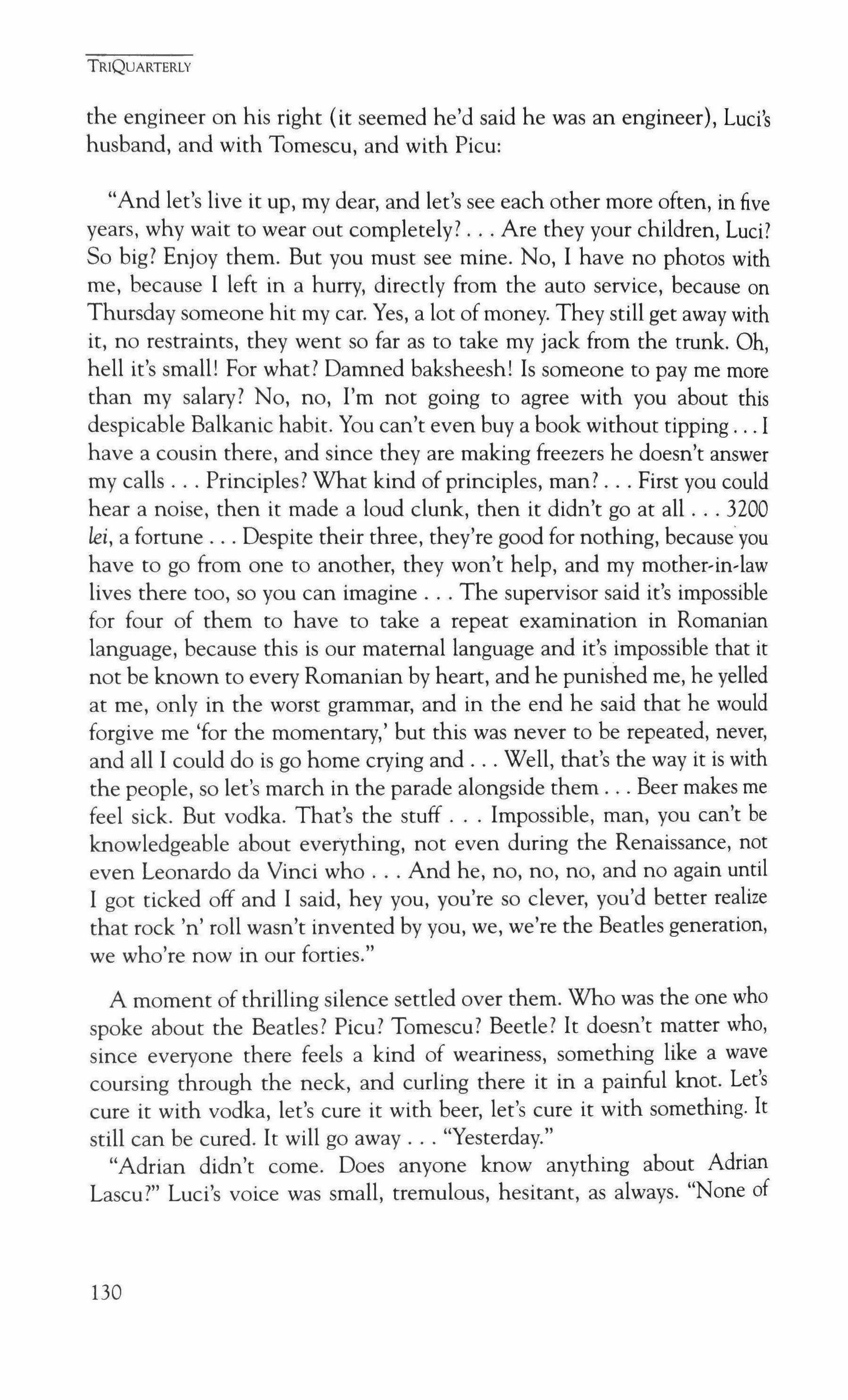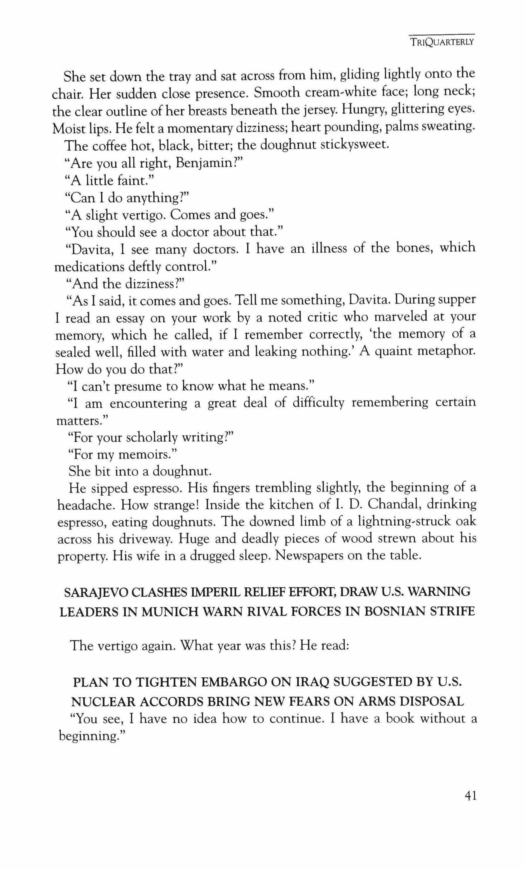 Publication of TriQuarterly is made possible in part by the donors of gifts and grants to the magazine. For their recent and continuing support, we are pleased to thank the Illinois Arts Council, the Lannan Foundation, the John D. and Catherine T. MacArthur Foundation, the National Endowment for the Arts, the Chicago Community Trust, and individual donors.