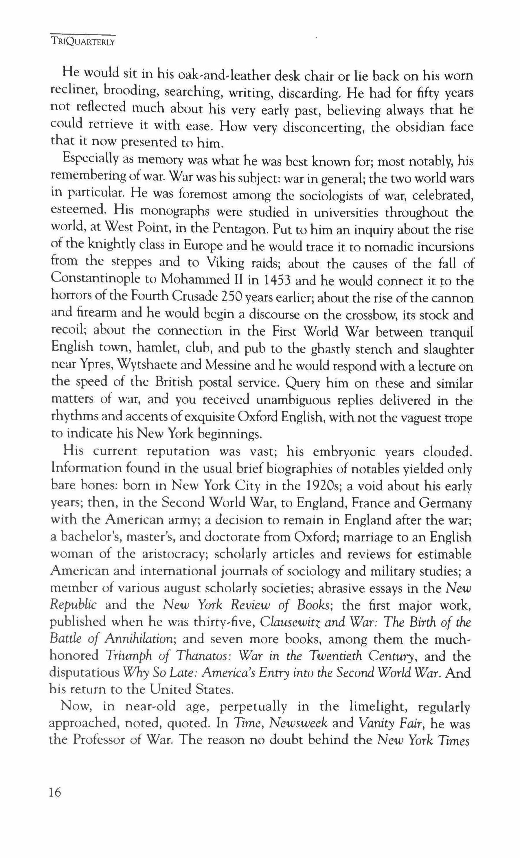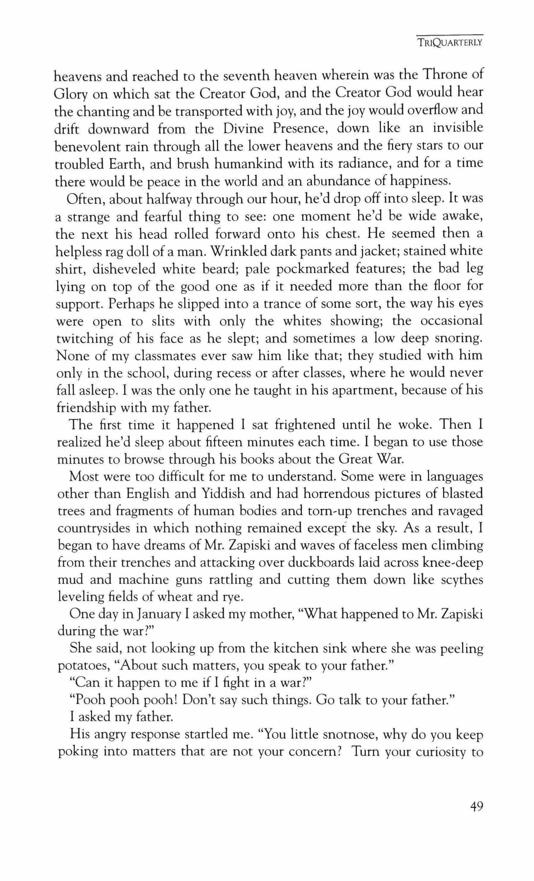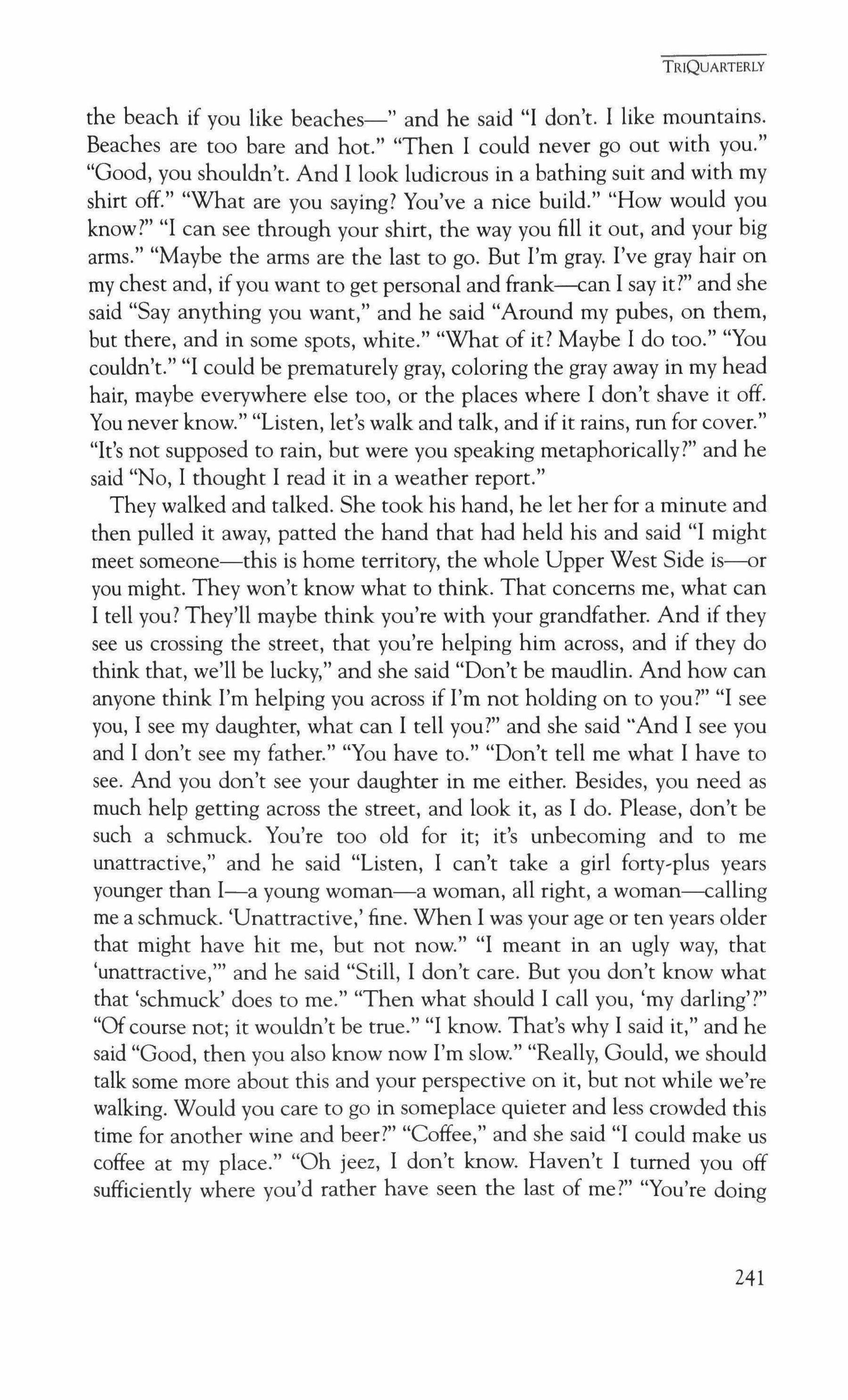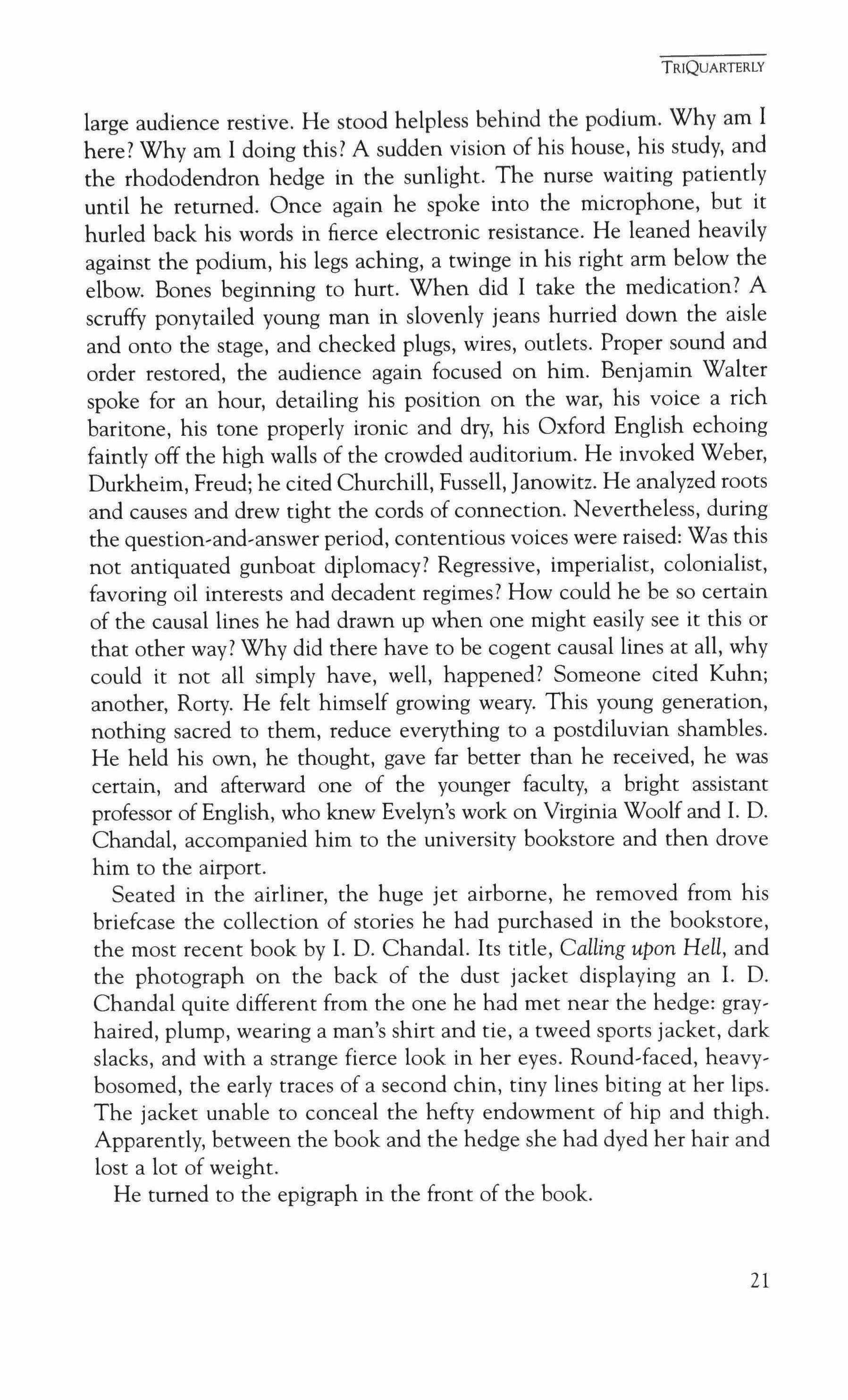 This issue of TriQuarterly magazine is dedicated to Jessie Firestone my first reader when I was a child, the first reader of my own creative work and, for sixteen years, a reader of every issue of TriQuarterly from cover to cover.